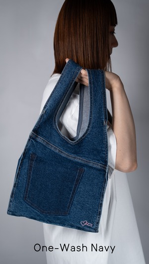 This is a one-of-a-kind remake jeans bag, featuring a “YOEKO” tag and Yoeko’s logo embroidery—completely original and full of charm!
