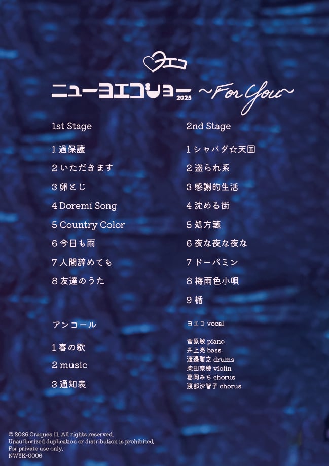 New Yoeko Show 2025 ~For You~ is now available as a 2-disc live DVD set.